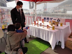 100円券をかけた射的ゲームでは100円券以外にもお菓子など命中し大盛り上がりでした。