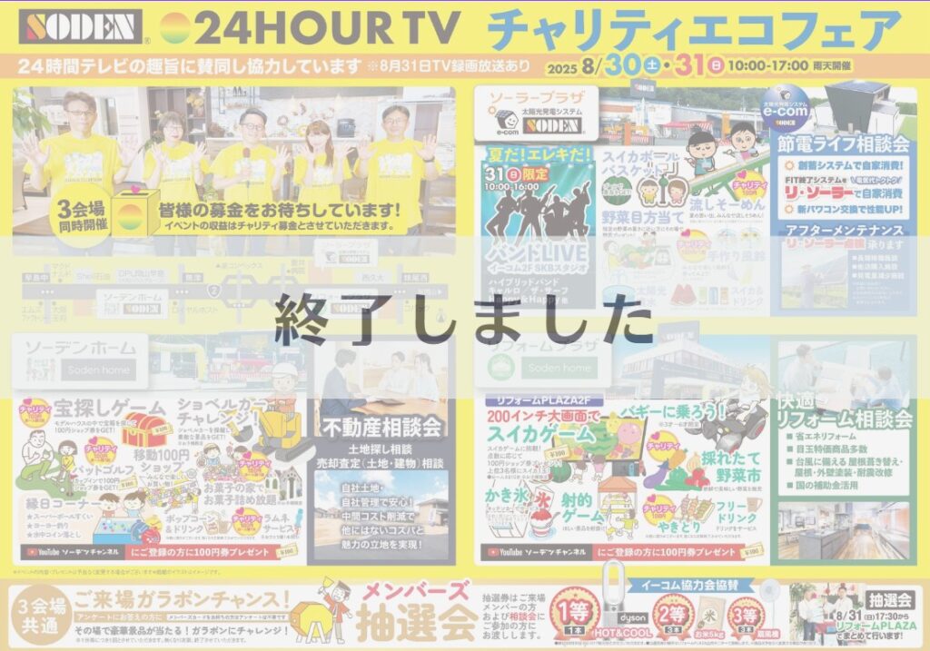 ソーデンホーム・リフォームプラザ・太陽光発電イーコムの3会場にて同時開催致します。