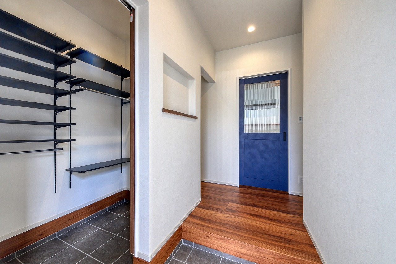 時短を考えた家事動線の他に、将来を見据えたスライド式の玄関ドアや昔ながらの和室。