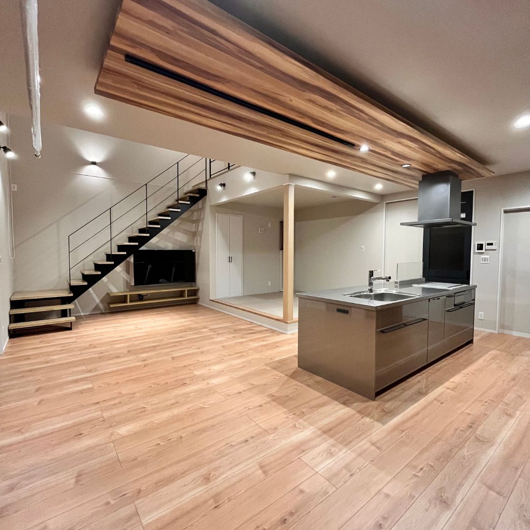 迫力の吹抜け空間と家族のつながり
