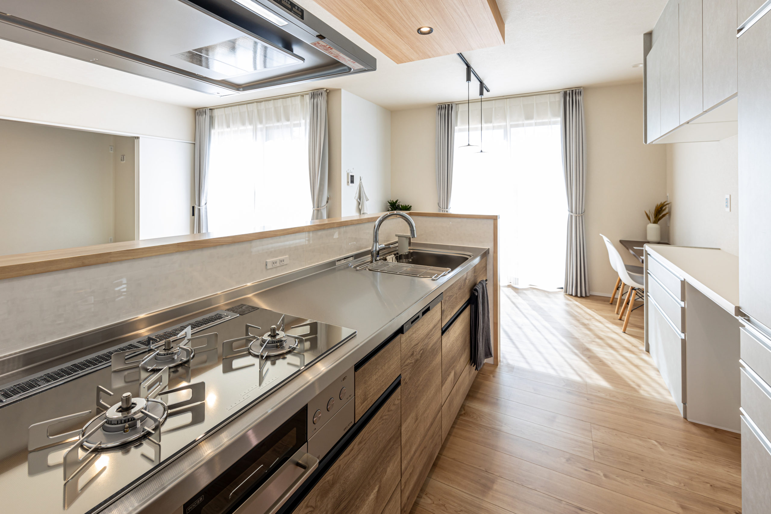 家族を感じられるリビングからは、奥様ご希望のランドリースペースへもすぐ。プライベートにも配慮した、家事ラクの家です。
