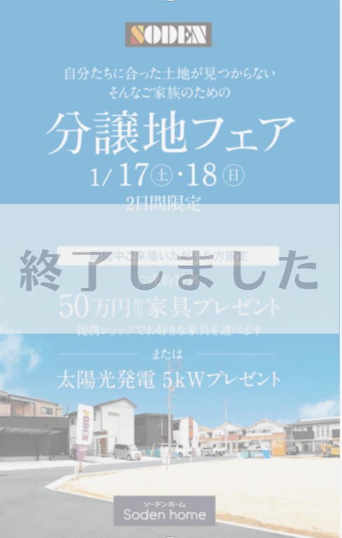 明日1月17日(土)から2日間にわたり分譲地フェア