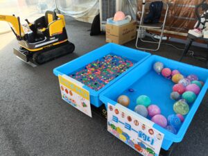 お子様向けのショベルカーチャレンジやヨーヨー釣り、スーパーボールすくいなど とてもご好評いただき、楽しんで頂けました。